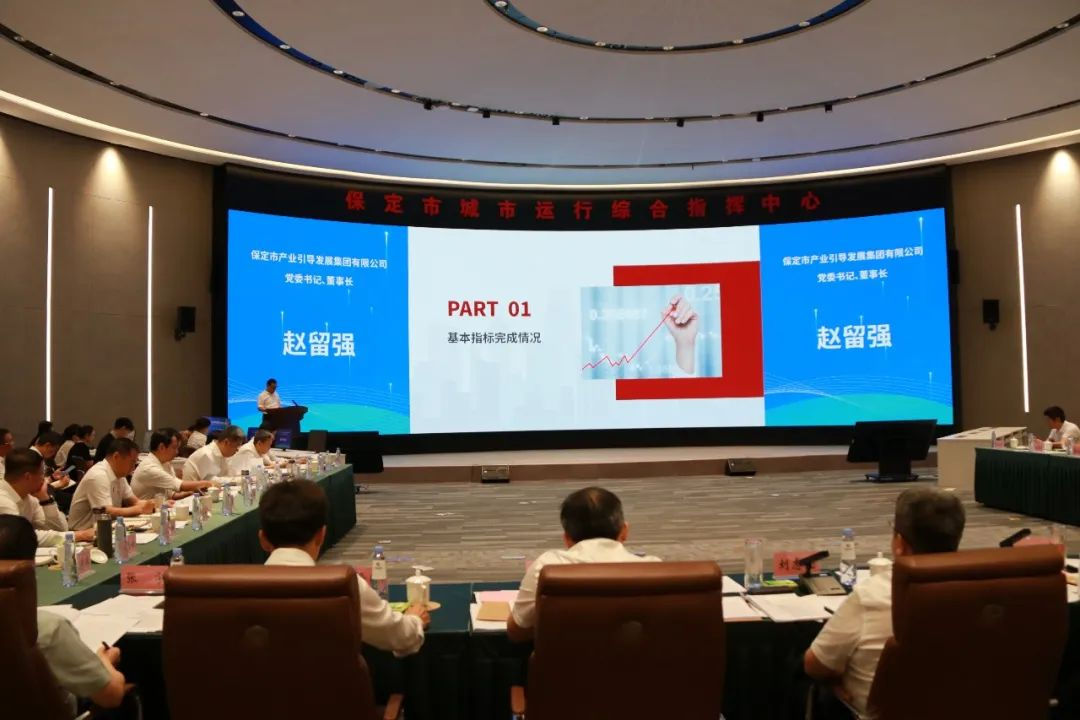 ??7月25日,保定產發集團參加市國資委主辦的2024年度國有企業年中考核述職測評會議。市委常委、常務副市長張貴寶參加會議并講話,集團黨委書記、董事長趙留強同志代表班子進行年中述職,接受評委組測評打分。集團黨委委員、總經理杜海峰,黨委委員、紀委書記孫曉靜以及有關工作人員參加會議。